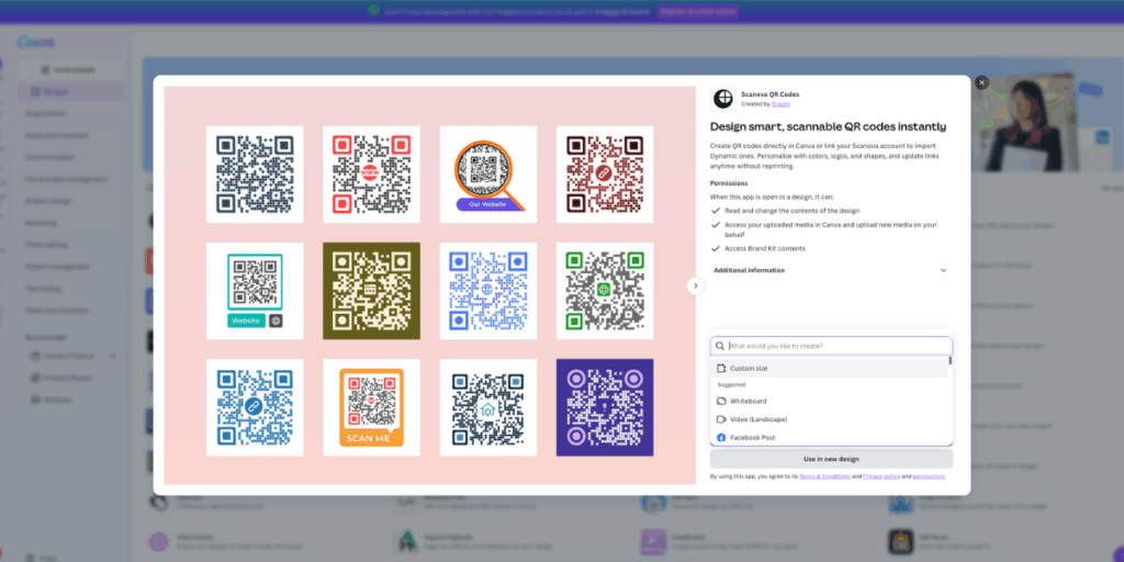 - The Scanova QR Codes App for Canva allows you to create and insert QR Codes directly within your design, eliminating the need to switch tabs or manually upload files.
