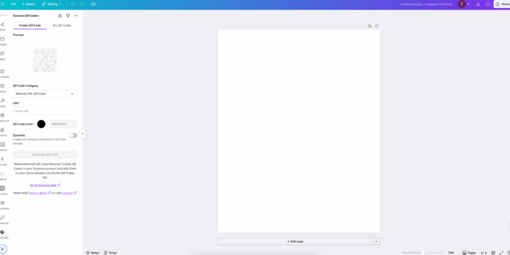 Scanova is a powerful online QR Code generator platform, and integrating it into your Canva workflow can elevate your QR Codes from simple black-and-white squares to dynamic brand assets.