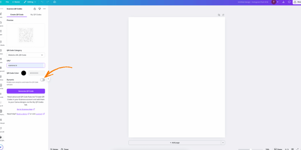 - You can generate both Static and Dynamic QR Codes right inside Canva.