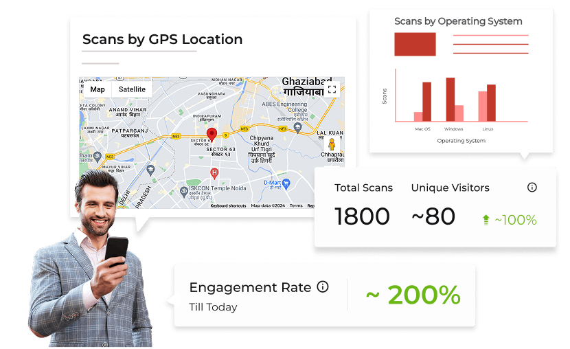 Scanova proporciona una función de análisis avanzada que le permite realizar un seguimiento de la actividad de escaneo, la participación del usuario y los datos demográficos. Obtenga datos sobre escaneos categorizados por fecha, día de la semana, hora, ciudad, país, tipo de dispositivo, navegador, sistema operativo y teléfono móvil.