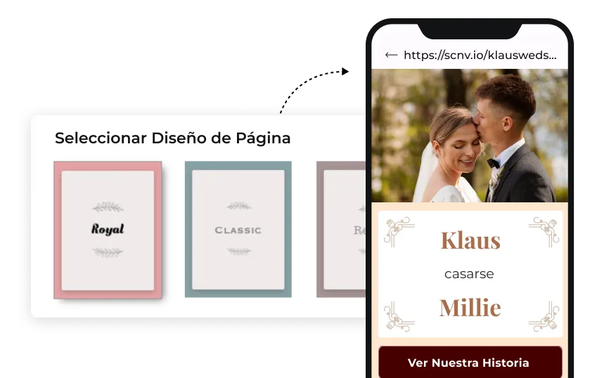 Codifique toda la información relacionada con la boda, como el calendario del evento, el lugar y la opción de confirmación de asistencia, en un código QR personalizado con el generador de códigos QR para bodas de Scanova