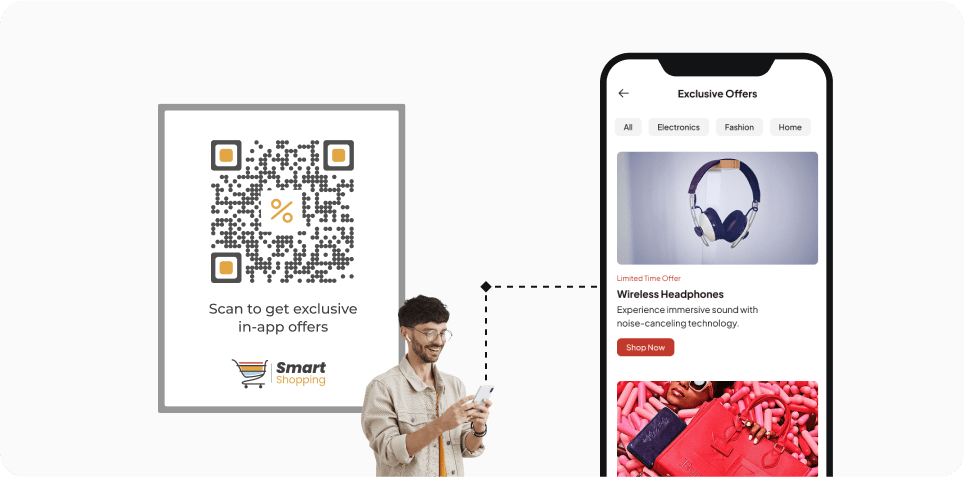 Les détaillants peuvent tirer parti des codes QR de liaison profonde de l'application Pour générer du trafic vers des pages de produits spécifiques ou des offres promotionnelles dans leurs applications mobiles. En plaçant ces codes QR sur des écrans en magasin, des dépliants ou des publications sur les réseaux sociaux, les clients peuvent rapidement accéder à des offres exclusives ou à de nouvelles arrivées.