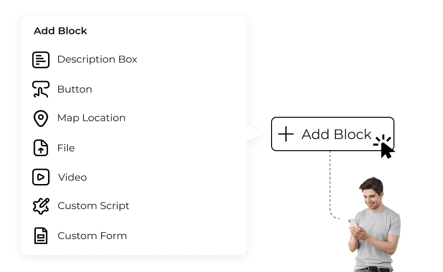 Ajouter des composants avancés tels que des formulaires personnalisés pour collecter des informations spécifiques aux participants, script personnalisé , vidéos, et plus encore pour améliorer la fonctionnalité de vos codes QR d'événement. Ces éléments améliorent l'engagement et offrent une expérience plus interactive.