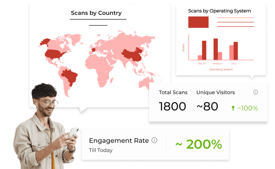 Les codes QR de l'événement permettent aux organisateurs de collecter des données en temps réel sur le nombre total d'analyses, l'emplacement des analyses et les détails de l'appareil. Ces informations précieuses aident à prendre des décisions éclairées pour améliorer les événements futurs.