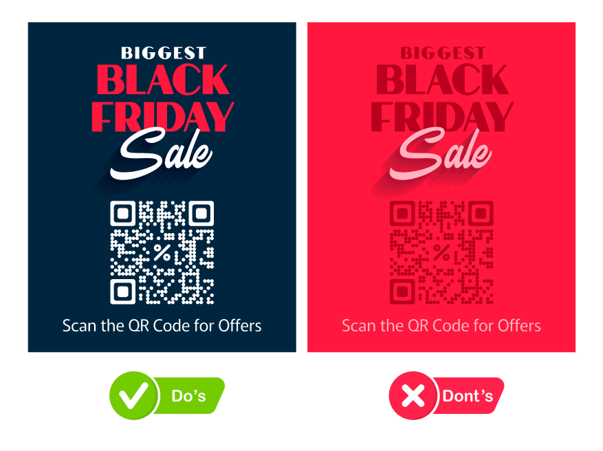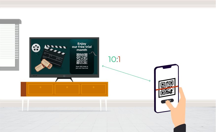 Assurez-vous que le code QR est de la bonne taille en fonction de la distance à laquelle il sera du public. Idéalement, le rapport de la distance de balayage (entre le code QR et l'utilisateur final) à la taille du code QR devrait être de 10: 1.
