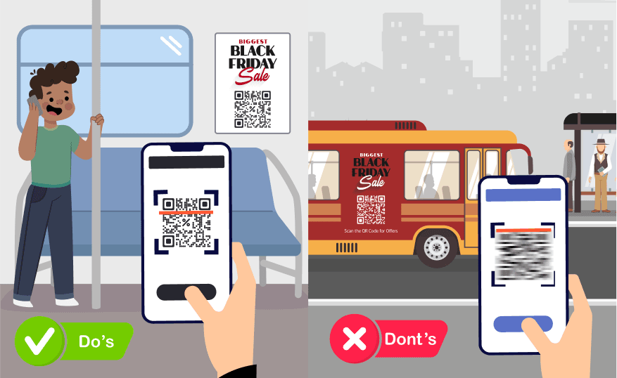 Positionnez le code QR dans des endroits où il est accessible au public. Par exemple, n'ajoutez jamais de code QR à une affiche dans un bus car personne ne fonctionnera après le véhicule pour scanner le code. Il est préférable de le placer à l'intérieur du bus, où les gens seraient confortablement assis pour scanner le code.